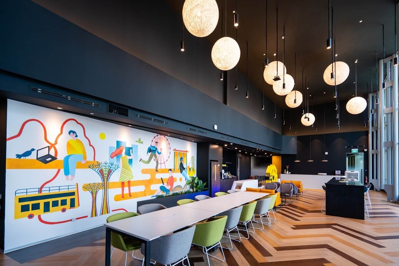 Amenities: Air Conditioning, Air Purifiers, Dog-Friendly, Drinking Water, Event Space, Football Table, Heating, High Speed WIFI, Kitchen, LCD, Leased Line, Microwave, Nap Room, Outdoor, Seating, Pantry, Printer, Projector, Scanner/Printers, Skype Room